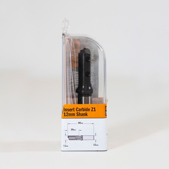 Frez prosty Z=1 na wymienne płytki posiadające wyżłobienia, które zapewniają bezpieczne i stabilne ułożenie ostrza na korpusie. Możliwość frezowania i wiercenia w takich materiałach jak MDF, laminowane DTD oraz twarde drewno. Może być stosowany zarówno we frezarkach ręcznych jak i maszynach CNC.