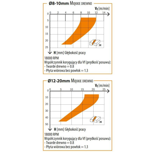 Do cięcia, kopiowania i frezowania w drewnie litym, materiałach drewnopochodnych. Przeznaczone do użytku na wysokich obrotach, na centrach obróbczych, maszynach CNC oraz ręcznych frezarkach górnowrzecionowych wyposażonych w odpowiedni uchwyt.