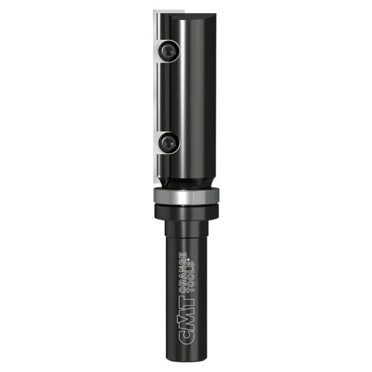 Frez prosty Z=1 na wymienne płytki mocowane za pomocą śrubek typu Torx. Wyposażony dodatkowo w górne łożysko, które umożliwia pracę z wykorzystaniem szablonu. Możliwość frezowania i wiercenia w płycie wiórowej i MDF. Do używania na frezarkach ręcznych.