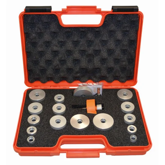 Ten praktyczny zestaw umożliwi Ci wykonanie 17 różnych rozmiarowo wręgów. Wcięcia głębsze niż 12,7 mm zaleca się wykonywać za pomocą kilku płytkich wybrań (przejść). Zestaw dostępny z trzpieniem 12mm oraz 12,7 mm.