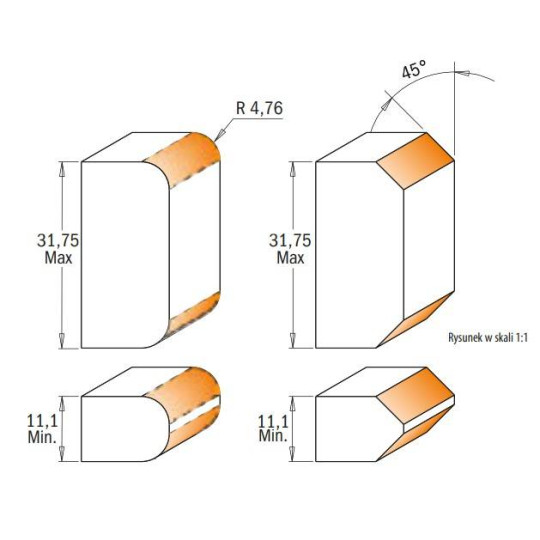 - Głowice do skosów 45 stopni