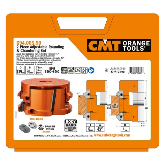 Regulowany zestaw głowic do zaokrąglania i fazowania CMT 694.005.50