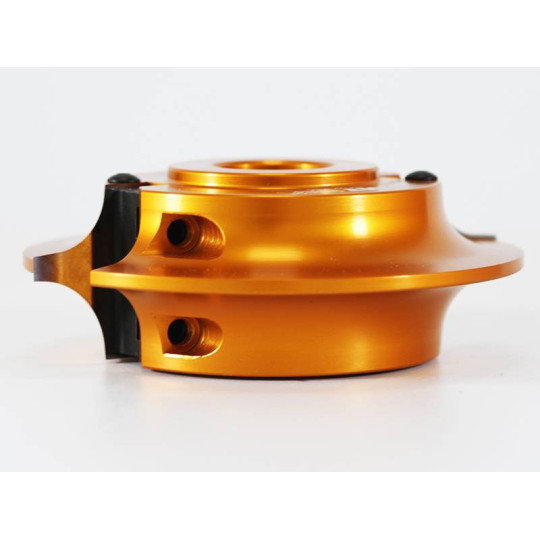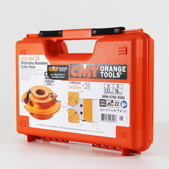 Głowica zaokrąglająca, mająca możliwość zamontowania trzech różnych noży, tworzących zaokrąglenie 6 różnych promieni. Standardowa głowica posiada noże o promieniach: 15 i 20 mm. Istnieje możliwość zakupu noży tworzących promienie o rozmiarach 12-18 mm. Do zastosowania na frezarkach dolnowrzecinowych i formatyzerkach. Do wszystkich materiałów, idealna do drewna litego oraz materiałów drewnopochodnych.Uwagi