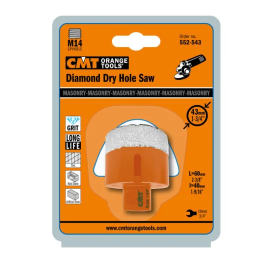 Diamentowe otwornice CMT zostały zaprojektowane z myślą o profesjonalistach, którzy potrzebują niezawodnych narzędzi do obróbki wyjątkowo twardych materiałów, takich jak gres, porcelana, granit, kamień, włókno szklane, płyty gipsowo-kartonowe, Perspex® oraz płytki ceramiczne. Są idealnym rozwiązaniem w sytuacjach, gdzie standardowe otwornice zawodzą.