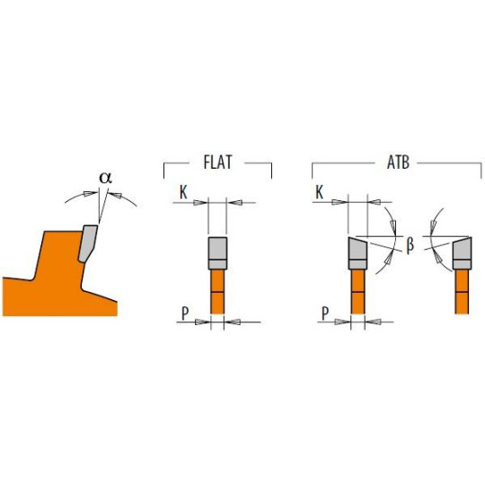 | Kod produktu | Grubość korpusu P | Grubość zęba K | Ilość zębów Z | Kąt natarcia | Kąt przyłożenia | Otwory dodatkowe | Średnica D | Średnica otworu wew. F | Zastosowanie |
