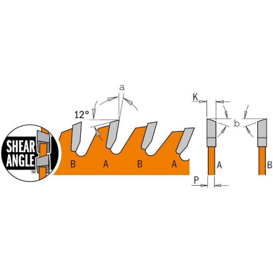 | Kod produktu | Grubość korpusu P | Grubość zęba K | Ilość zębów Z | Kąt natarcia | Kształt zęba (ZĄB) | Otwory dodatkowe | Średnica D | Średnica otworu wew. F | Zastosowanie |