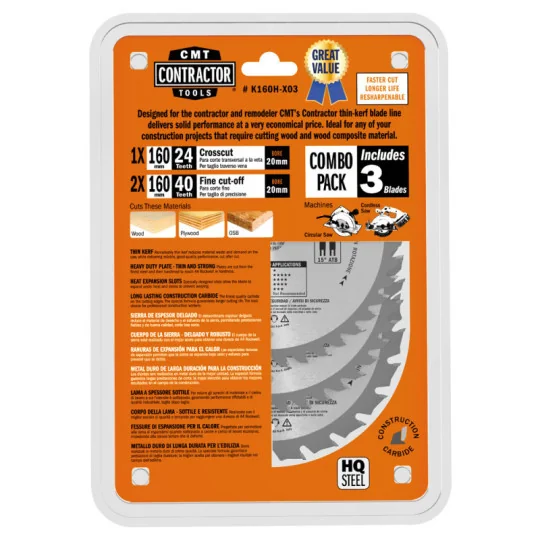 Zestaw 3 pił tarcz HM D-160 1x K16024H + 2x K16040H CMT K160H-X03