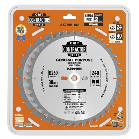 Zestaw 2 pił tarcz HM D-250 K25024M + K25040M CMT K250M-X02