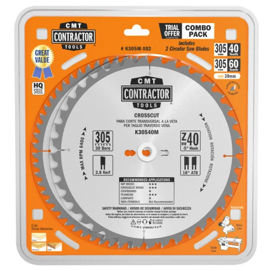 Zestaw 2 pił tarcz HM D-305 K30540M + K30560M CMT K305M-X02