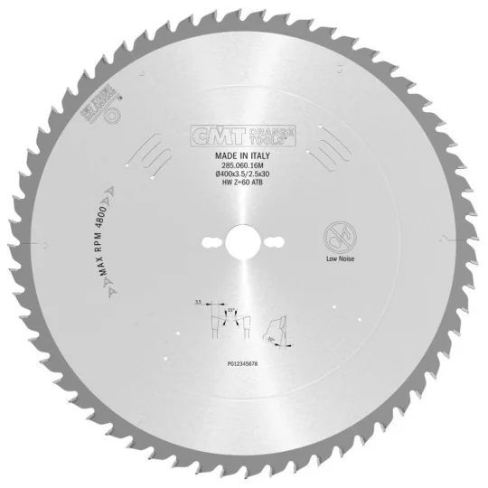 | 294.060.10M | powyżej 3 tygodni | 1,8 mm | 2,4 mm | 60 | -5° Neg. | 15° NS (ATB) | COMBI3 | 254 mm | 30 mm | mat. drewnopochodne |