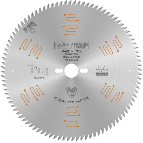 Piła tarcza chromowana wyciszona z zębem typu „na przemian skos” CMT 285.696.12M