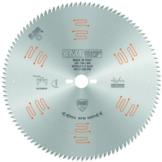 Piła tarcza chromowana wyciszona z zębem typu „na przemian skos” CMT 285.708.14M