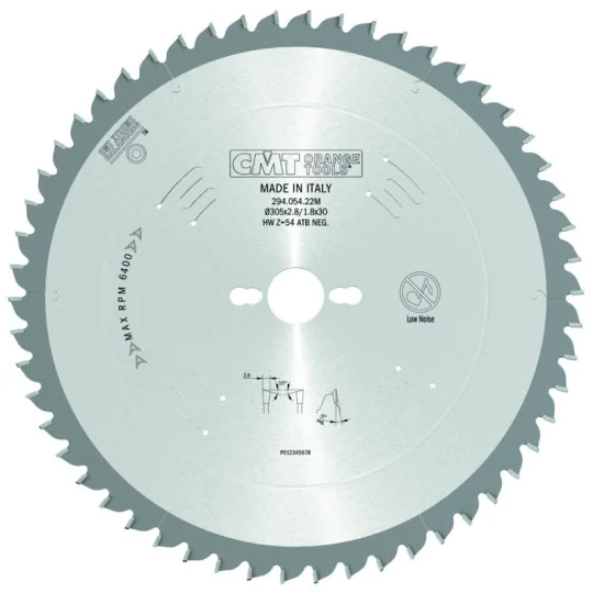 | 294.060.10M | powyżej 3 tygodni | 1,8 mm | 2,4 mm | 60 | -5° Neg. | 15° NS (ATB) | COMBI3 | 254 mm | 30 mm | mat. drewnopochodne |