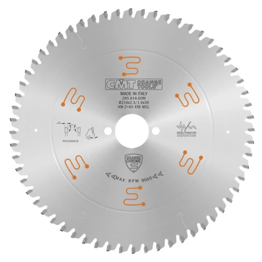 Piła tarcza chromowana wyciszona HM D216 F30 Z60 K2,3/1,6 2/7/42 CHROME CMT 285.816.60M