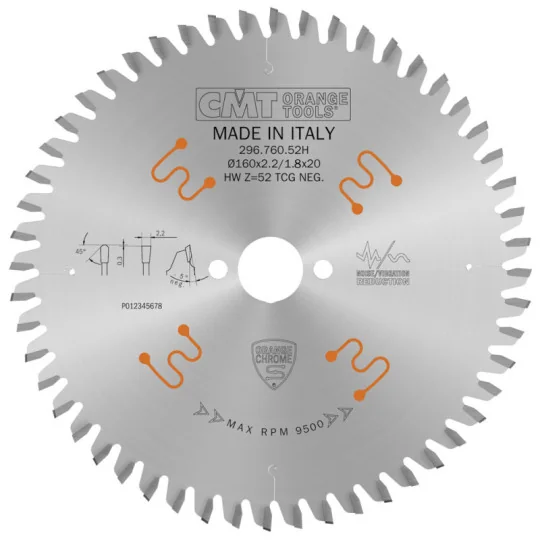 Piła tarcza do materiałów nieżelaznych oraz płyt laminowanych HW D160 F20 Z52 K2,2/1,8 CMT 296.760.52H