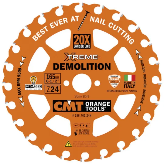 286.765.24H Piła tarcza HM Xtreme Demolition D:165 Z:24 F:20 K/P:2,3,/1,2 mm CMT