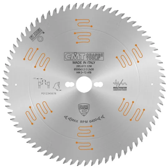 CMT 285.672.12M to profesjonalna tarcza piły, która została zaprojektowana z myślą o precyzyjnym i czystym cięciu w szerokim zakresie materiałów drewnianych. Jej chromowana powierzchnia nie tylko zwiększa odporność na korozję i zużycie, ale również minimalizuje przywieranie żywicy i pyłu, co przekłada się na dłuższą żywotność i wyższą jakość cięcia.