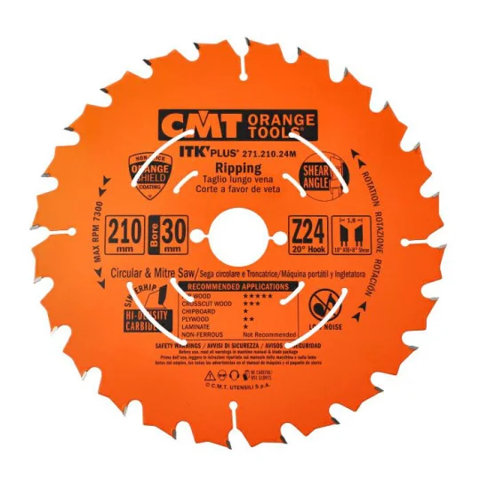 Tarcza CMT 271.210.24M z serii ITK PLUS to idealne narzędzie do cięcia wzdłużnego drewna – zarówno miękkiego, jak i twardego. Dzięki cienkiemu rzazowi i 24 ostrym zębom tarcza oferuje płynne cięcie przy minimalnym oporze. Dodatkowym atutem jest wyciszona konstrukcja, która redukuje hałas i drgania podczas pracy.