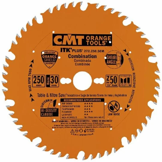 Tarcza CMT ITK 272.250.50M została zaprojektowana z myślą o maksymalnej precyzji cięcia poprzecznego. Dzięki zaawansowanej geometrii zębów 4xATB + 1 PR (cztery naprzemienne skośne + jeden prosty) idealnie radzi sobie z czystym, gładkim cięciem – zarówno w twardym, jak i miękkim drewnie.