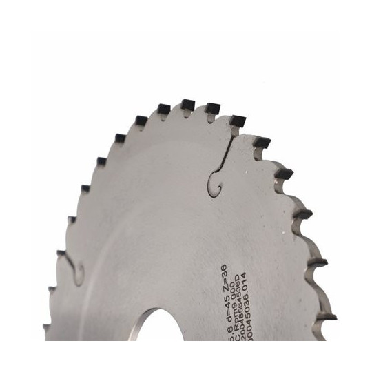 Dzięki laserowo wykonanym nacięciom wyciszającym piła wytwarza mniej hałasu podczas pracy. Nacięcia redukują również drgania piły zwiększając precyzje cięcia.
