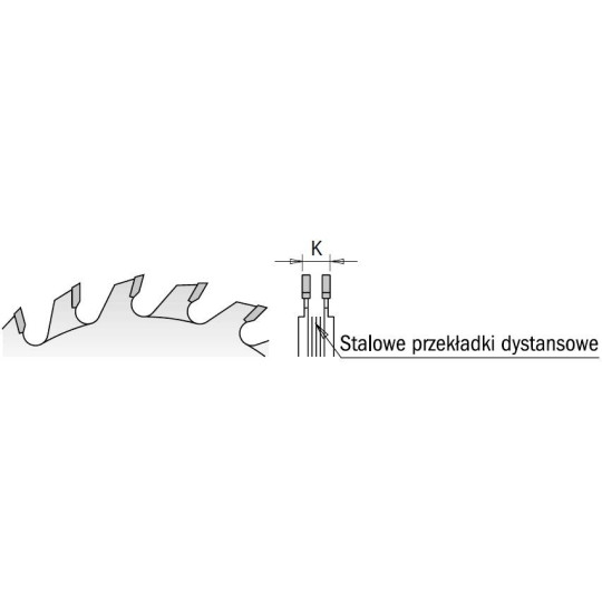 | Kod produktu | Grubość korpusu P | Grubość zęba K | Ilość zębów Z | Kąt natarcia | Kąt przyłożenia | Średnica D | Średnica otworu wew. F | Zastosowanie |