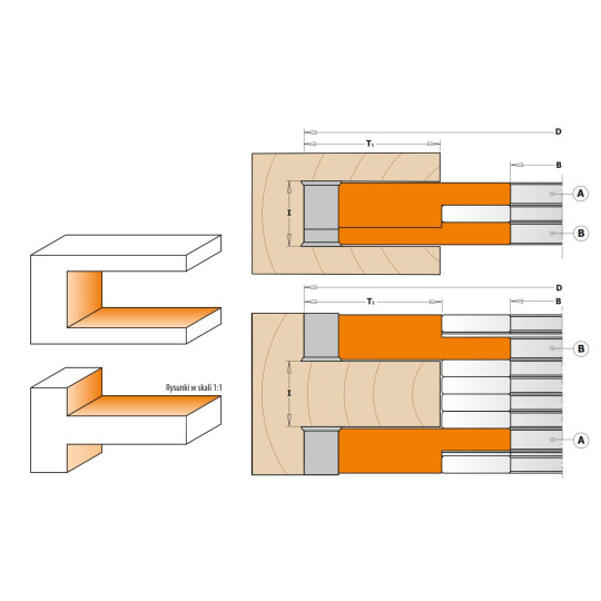 Rowkowanie we wszystkich materiałach, polecane do drewna litego, sklejki oraz laminatów.Uwagi