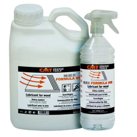 CMT Lubrykant 998.002.01 to profesjonalny płyn smarujący przeznaczony do blatów i elementów roboczych maszyn stolarskich. Stworzony z myślą o pracy z drewnem, zapewnia gładki posuw materiału, chroni powierzchnie przed korozją oraz ogranicza przywieranie żywicy, pyłu i drobnych wiórów.