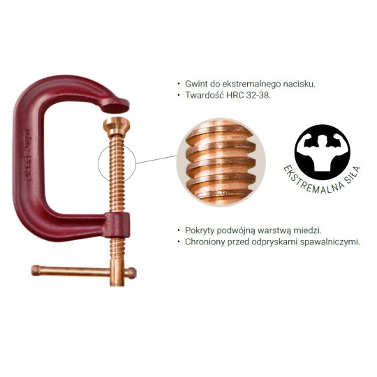 - Powłoka: Podwójna warstwa miedzi – zwiększa odporność na korozję oraz chroni przed odpryskami spawalniczymi, co przedłuża żywotność narzędzia.