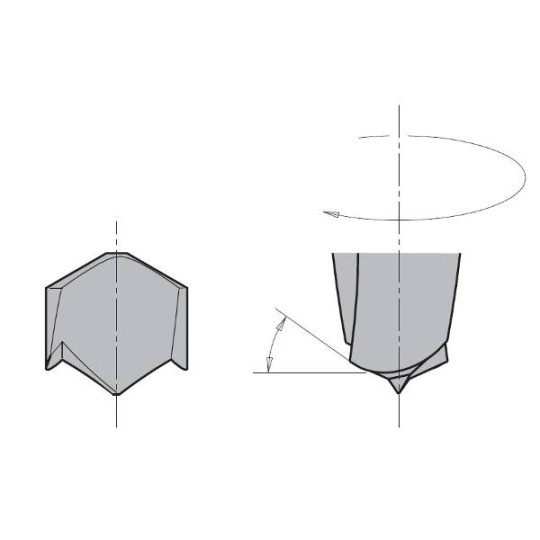 - Krawędź wgłębna biegnie aż do środka wiertła, co pozwala ograniczyć opór podczas wiercenia i podnosi szybkość pracy.